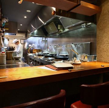 オープンキッチンを囲む3席のカウンターは、香港出身シェフの鮮やかな手さばきを間近に望める特等席。シックな音楽が流れる高級感漂う空間で、お一人様はもちろん、大人のデートにも最適です。出来立ての点心や香ばしい「大海老のガーリックチップ炒め」を、五感で楽しみながらゆったりとした時間をお過ごしください。